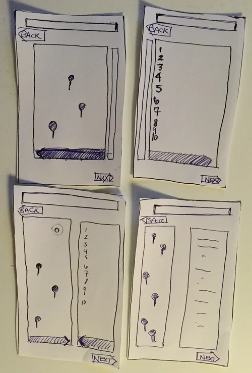 The following sequence illustrates the revised user flow through use of a low fidelity mockup. After testing the initial flow using a number of methods and utilizing feedback from target users, increased functionality and a shorter user path was achieved.